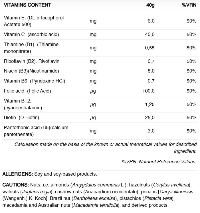 - A fost adăugat un complex de vitamine cu 10 vitamine, oferind 50% din VNR.