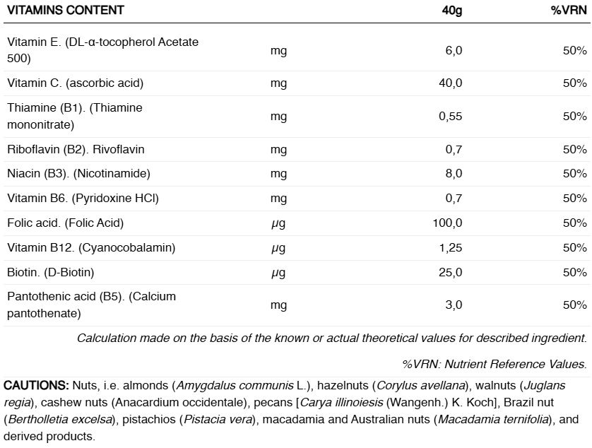 - A fost adăugat un complex de vitamine cu 10 vitamine, oferind 50% din VNR.