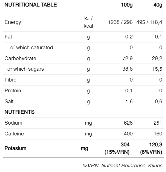 Gel energetic cu cafeină: Formulat cu diferite cantități de cofeină ecologică de înaltă calitate (40mg sau 160mg).