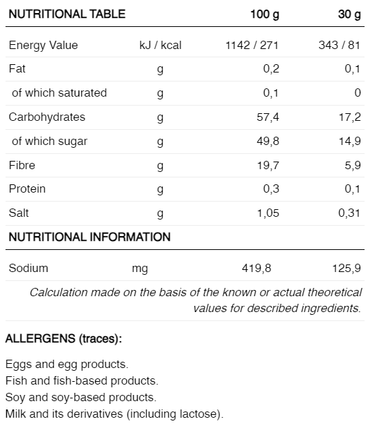 - Amestecul de carbohidrați oferă energie, principalele lor ingrediente organice fiind zahărul auriu și siropul de orez. Deci energia pe care o primești este de cea mai bună calitate, asigurând o mai bună asimilare a carbohidraților.