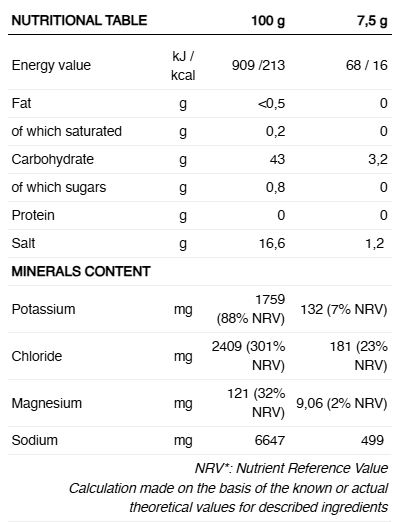 INGREDIENTE: Arome, citrat de sodiu, amidon de cartofi, acid (acid citric), citrat de potasiu, sare de mare (clorura de sodiu), concentrat de suc de sfecla roșie, îndulcitor (glicozide steviol) si sare de magneziu a acidului citric.