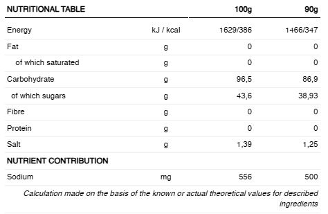 BĂUTURA ENERGETICĂ oferă un aport de 87 g de carbohidrați și 500 mg de sodiu per porție din maltodextrină și fructoză, în proporție de 10:8.