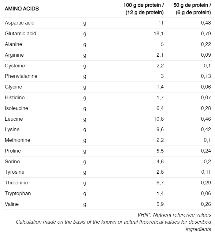 INGREDIENTE: amidon de cartofi, proteine din lapte (concentrat de proteine din zer (lapte)), l-leucină, concentrat de suc de sfeclă roșie, acid citric acidulant, l-carnitină l-tartrat, taurină, clorură de sodiu, l-tirozină, l-izoleucină, l- valină, aromă, îndulcitor sucraloză, colorant caramel amoniac, extract de portocale (Citrus aurantium), clorhidrat de piridoxină și clorhidrat de tiamină. Poate contine urme de soia.
