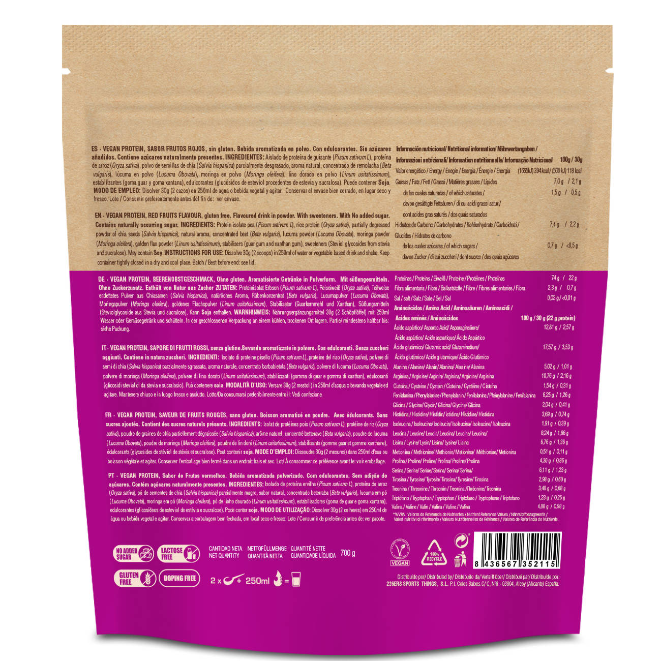226ers - plic pudra proteica - Vegan Protein 700 - fructe rosii - 700gr