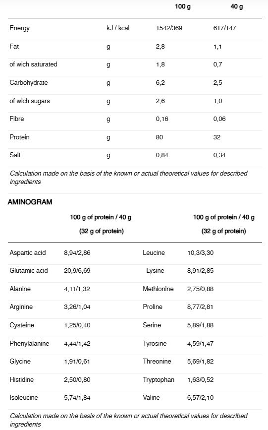 - Un aport proaspăt de cazeină din cazeină micelară (60%), obținut prin filtrare și păstrând astfel structura sa nativă.