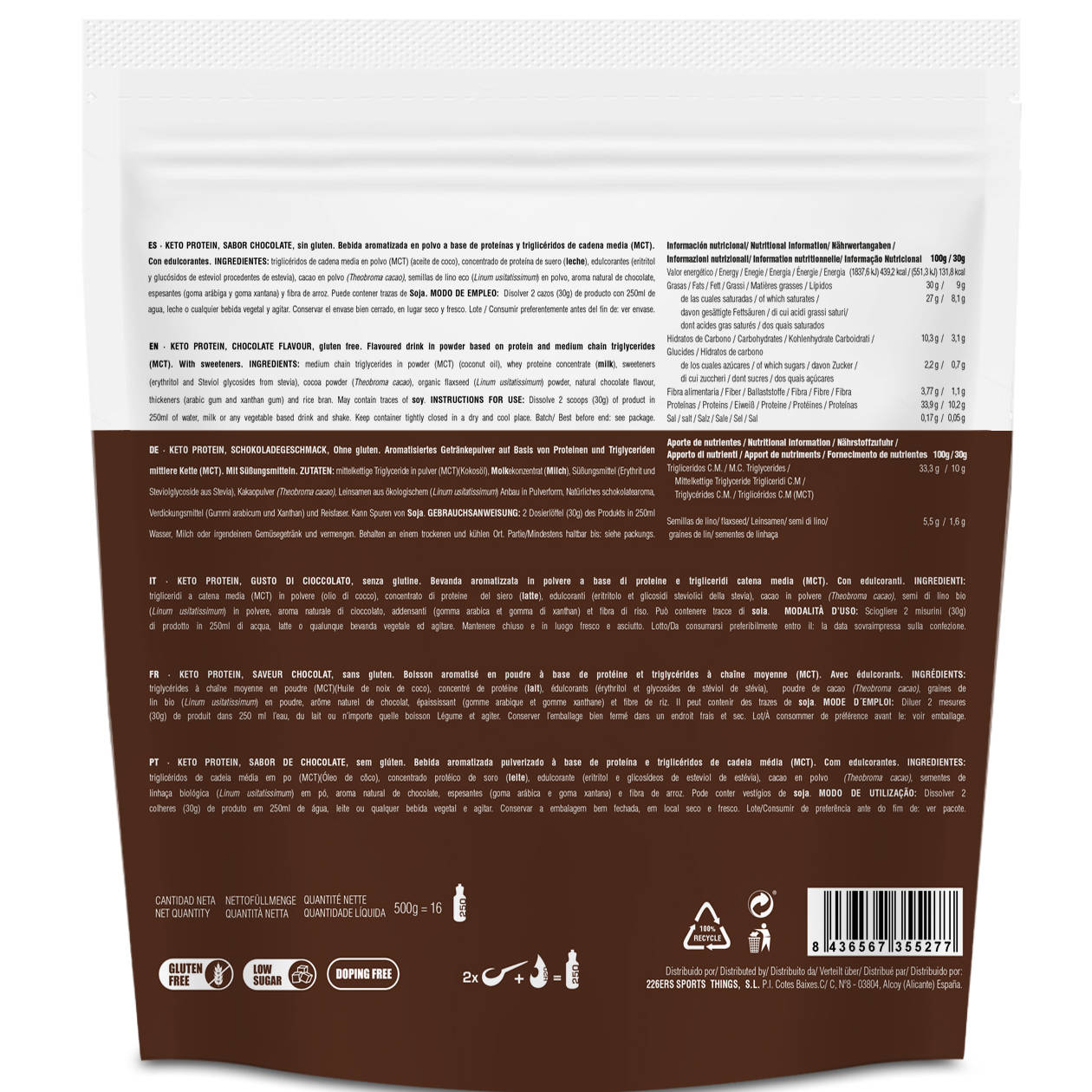 226ers - pudra proteica - Keto Protein - ciocolata - 500gr