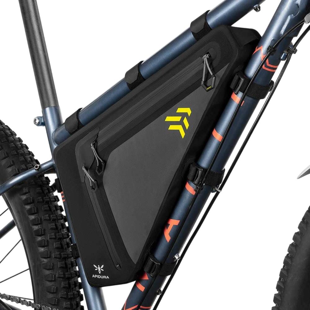 Geanta cu cadru complet se potrivește în triunghiul principal al bicicletei, oferind un spațiu mare pentru articole voluminoase - orice, de la unelte de gătit la unelte grele și o vezică de apă.