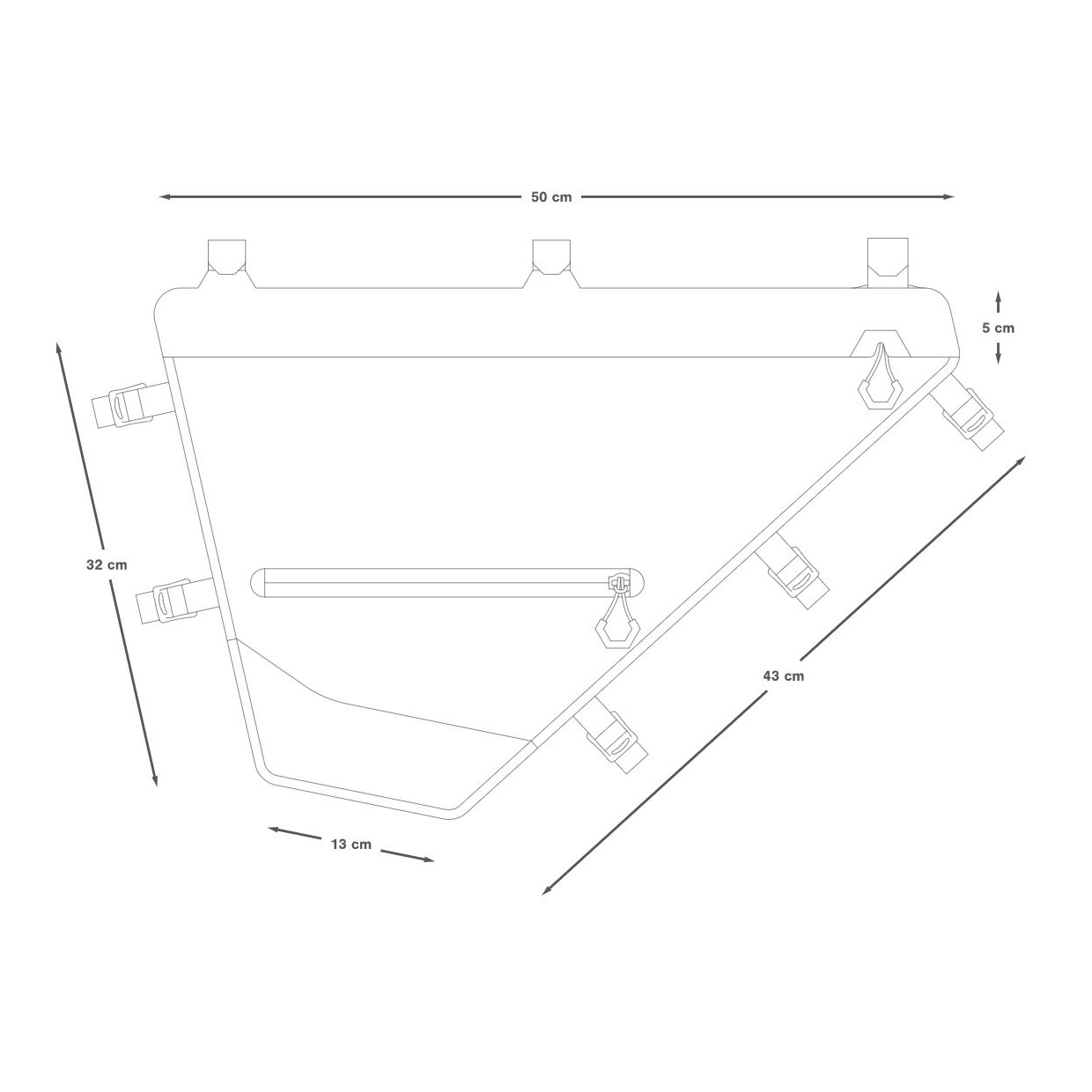 Pachetul se potrivește în triunghiul principal al bicicletei, oferind un spațiu mare pentru articole voluminoase - orice, de la echipament de gătit și stâlpi de cort, până la unelte grele pentru expediții mai lungi și călătorii de împachetare cu bicicleta. Centrul de greutate scăzut rezultat este răspândit de-a lungul unui plan central îngust, rezultând un pachet care are un efect minim asupra manevrării, oferind în același timp un volum mare de spațiu de depozitare.