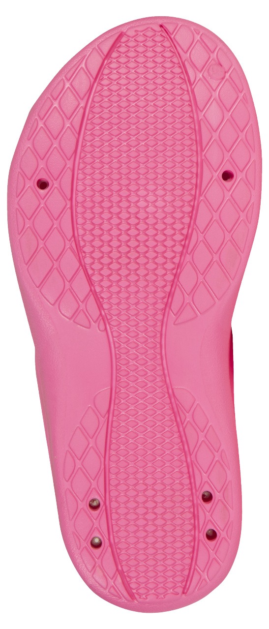Papuci pentru copii, pentru bazin, cu greutate redusă, prevăzut cu canale de scurgere a apei, iar pe talpă cu canale de drenare a apei. Uscare rapidă.