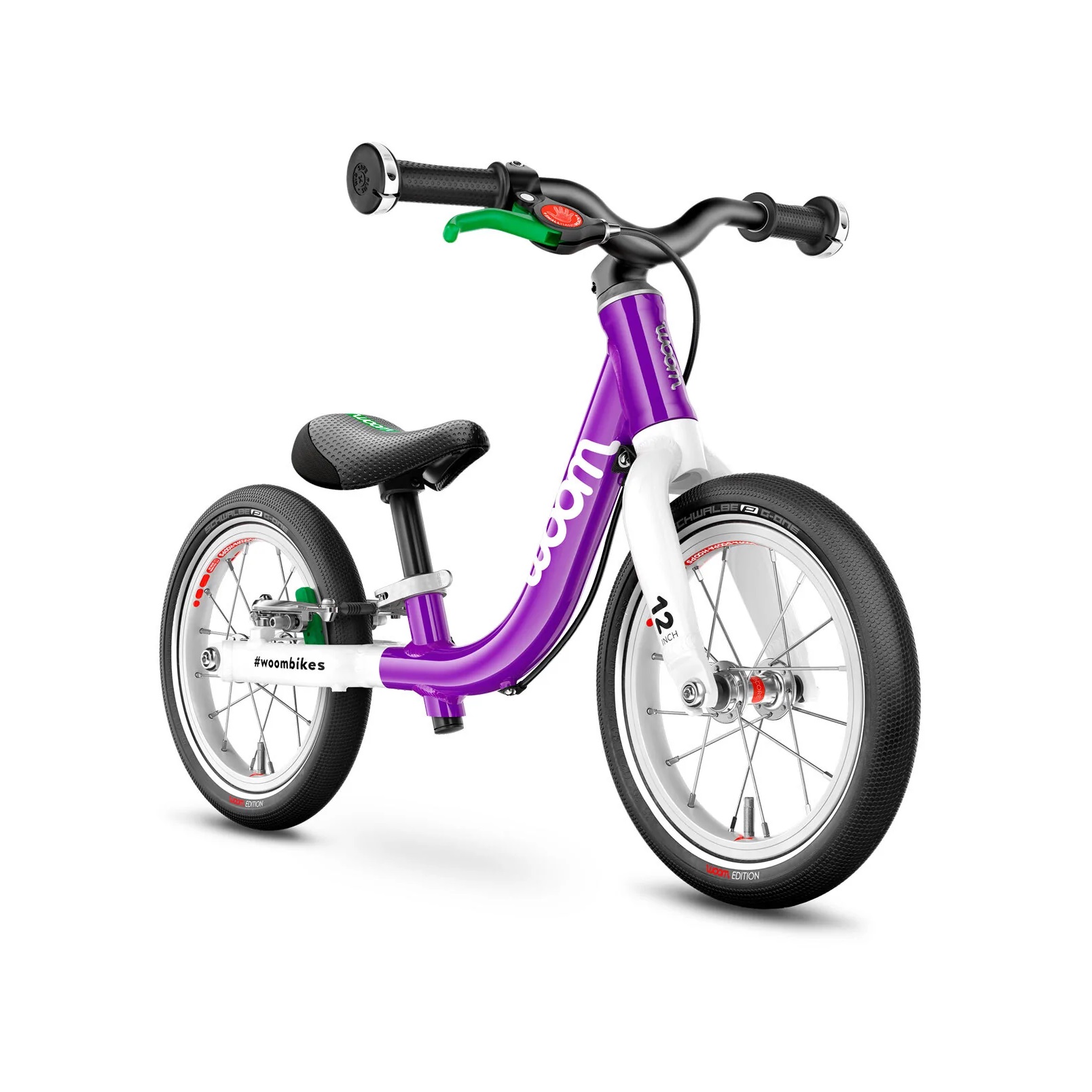 Bicicleta copii Woom 1 cu roti 12" mov intens alb