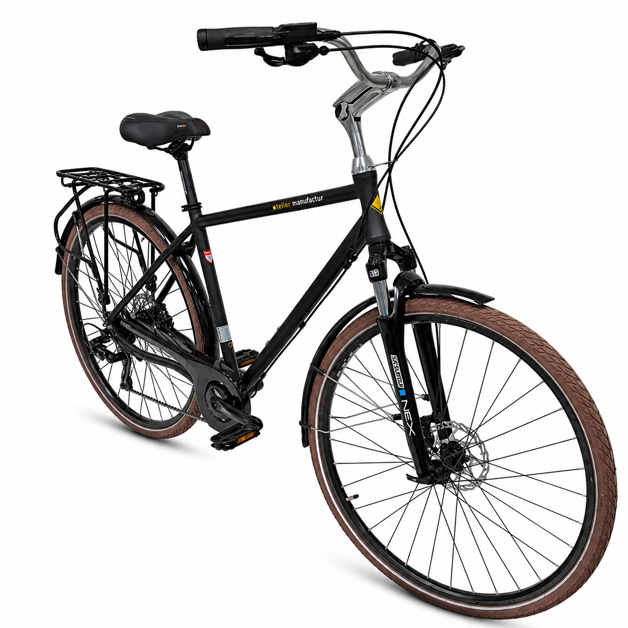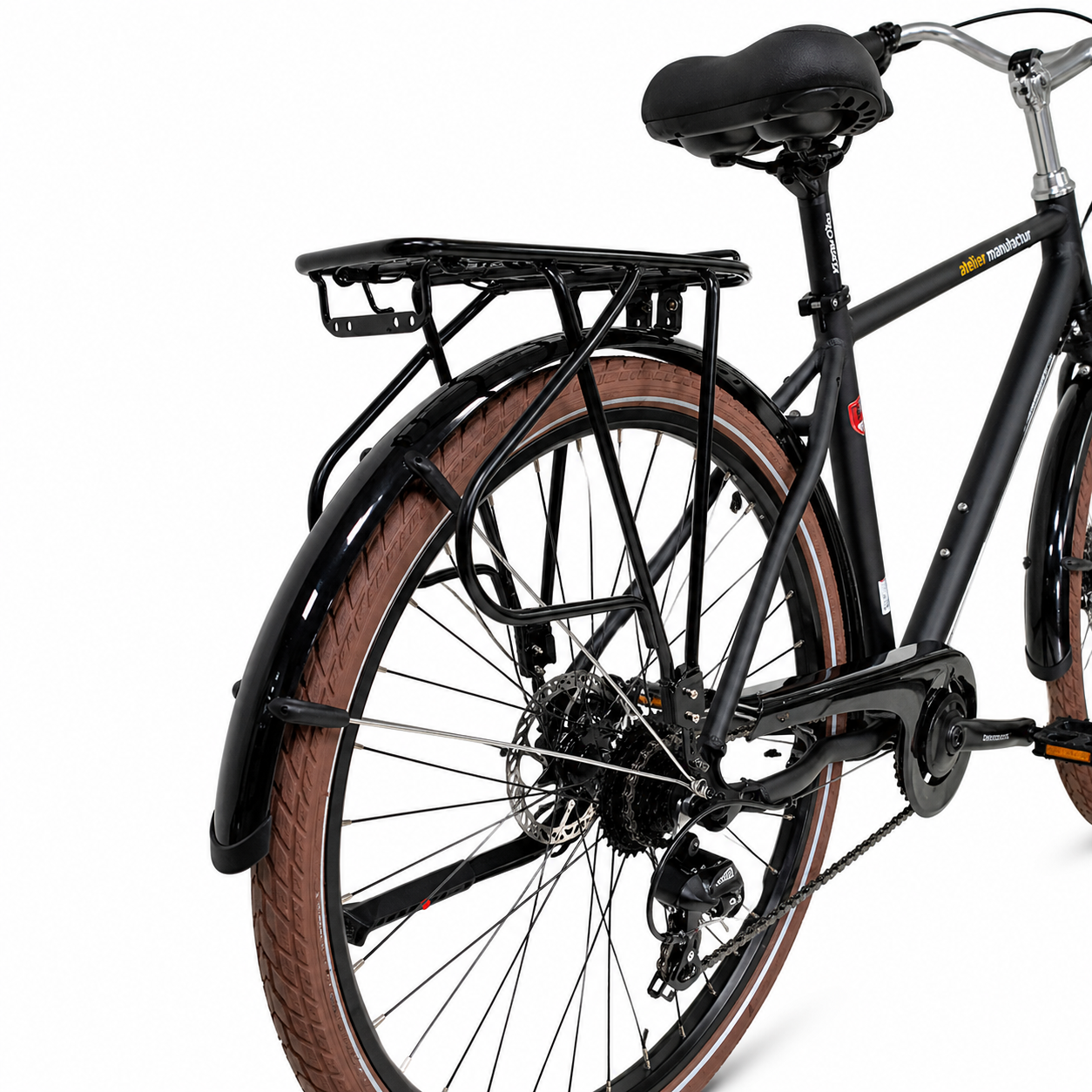 - Furca cu suspensie 63 mm – confort sporit pe drumuri denivelate