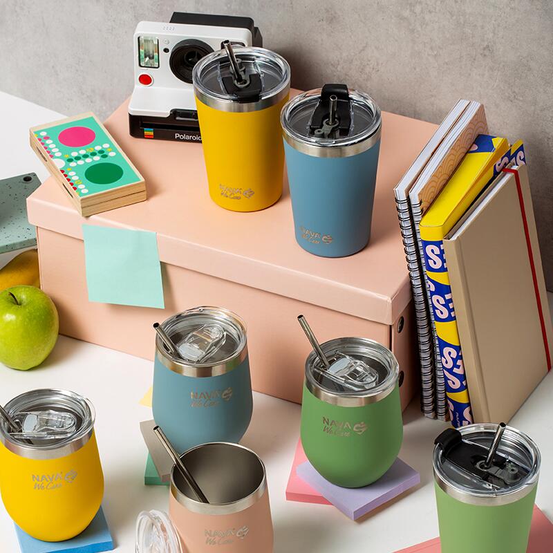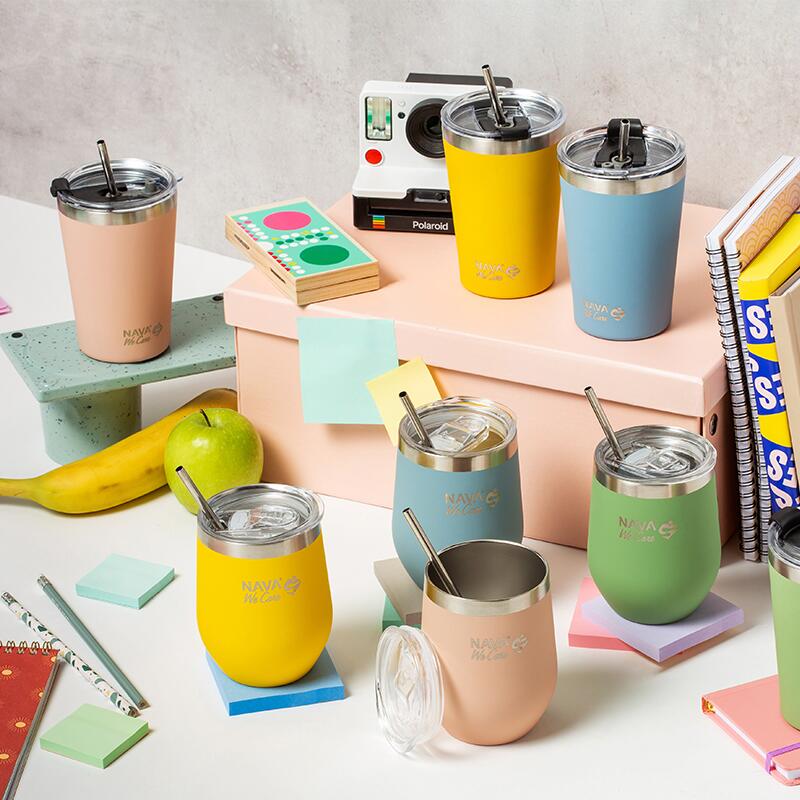 Paharul termos Nava 450ml „We Care” cu paie din oțel inoxidabil, într-o culoare superbă, este un produs inovator care îmbină funcționalitatea cu stilul. Este realizat din otel inoxidabil 18/8 (ss304), fara BPA, PVC, ftalati sau alte substante nocive si garanteaza o depozitare absolut sigura si igienica a bauturilor dumneavoastra. In acest pahar cu o capacitate de 450ml, vei pastra bauturile fie calde, fie reci la temperatura dorita timp de 2-3 ore, in functie de temperatura exterioara. Produsul vine cu cateva functionalitati cum ar fi un strat antiderapant mat la exterior pentru a-l ține în siguranță, un inel de silicon pe capac pentru o închidere sigură și fără scurgeri pentru băuturile tale reci si un pai din oțel inoxidabil inclus pentru ușurință în utilizare, făcându-l o alegere ecologică, contribuind la reducerea consumului de plastic. Ideal pentru birou, camping, excursie. Se poate spăla în mașina de spălat vase (fără capac). Nu este sigur pentru cuptorul cu microunde. Instructiuni de utilizare: - Înainte de prima utilizare, spălați produsul cu apă caldă, lichid de spălat vase și un burete moale. - Dupa fiecare utilizare se spala si se usuca bine cu o laveta uscata. - Nu folosiți bureți metalici, sârmă sau produse de curățare dure. - Fabricat în conformitate cu reglementările pentru produsele ce intra în contact cu alimentele. |