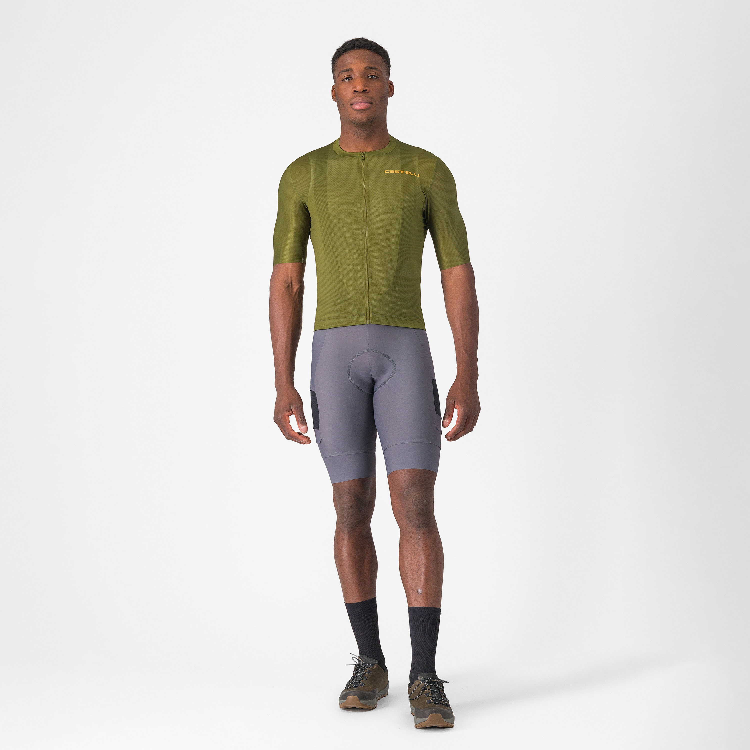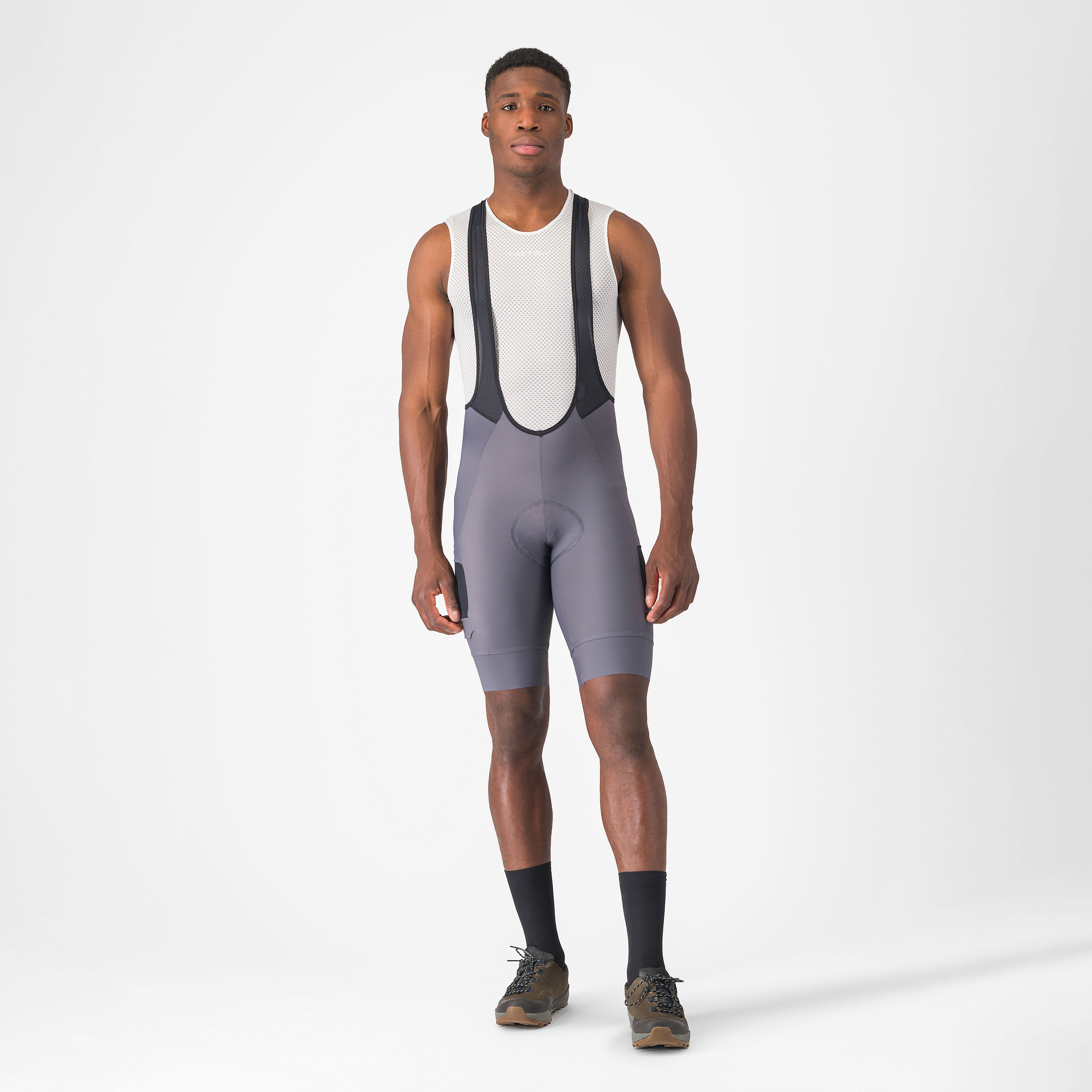 Castelli - pantaloni ciclism scurti cu bretele - Unlimited Cargo Bibshort - 15-35 gr C - gri inchis Smokey