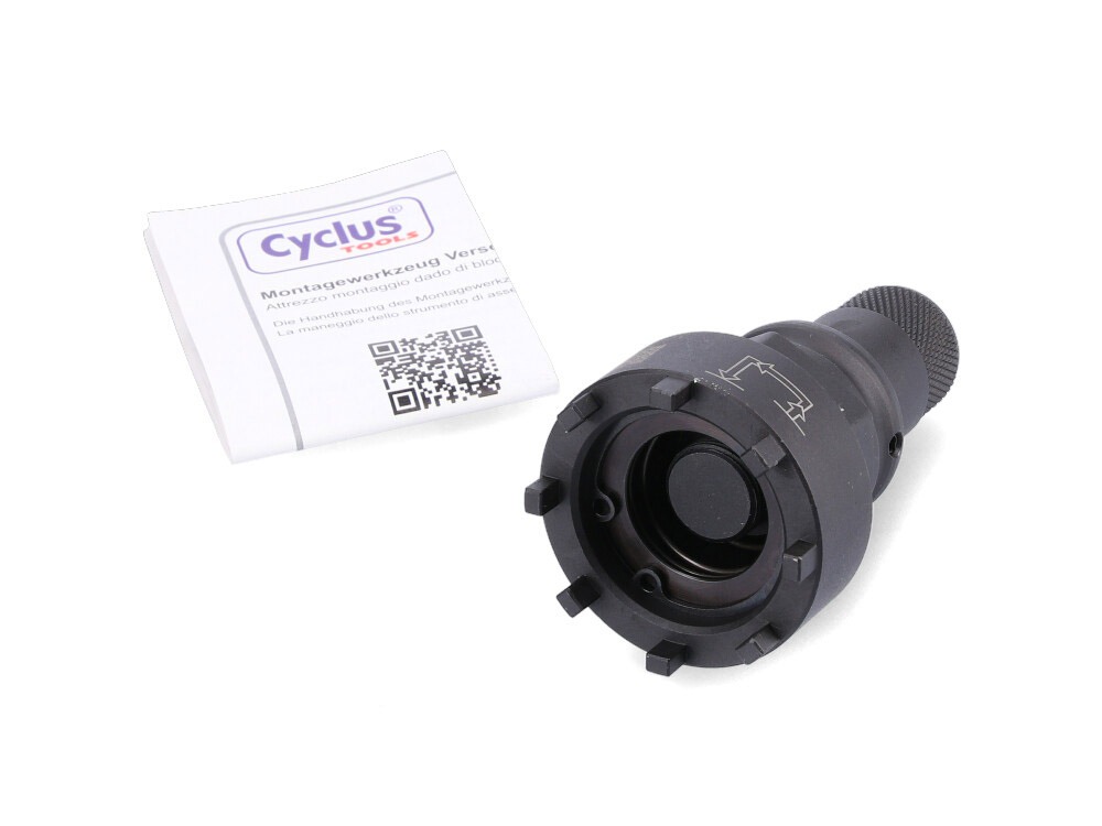 Cu instrumentul de asamblare de la Cyclus Tools puteți slăbi piulița de blocare a motorului electric Bosch de pe bicicleta dumneavoastră electrică. Deci puteți schimba păianjenul și lanțul. Ghidajul de filet integrat asigură o fixare strânsă pe axa manivelei.