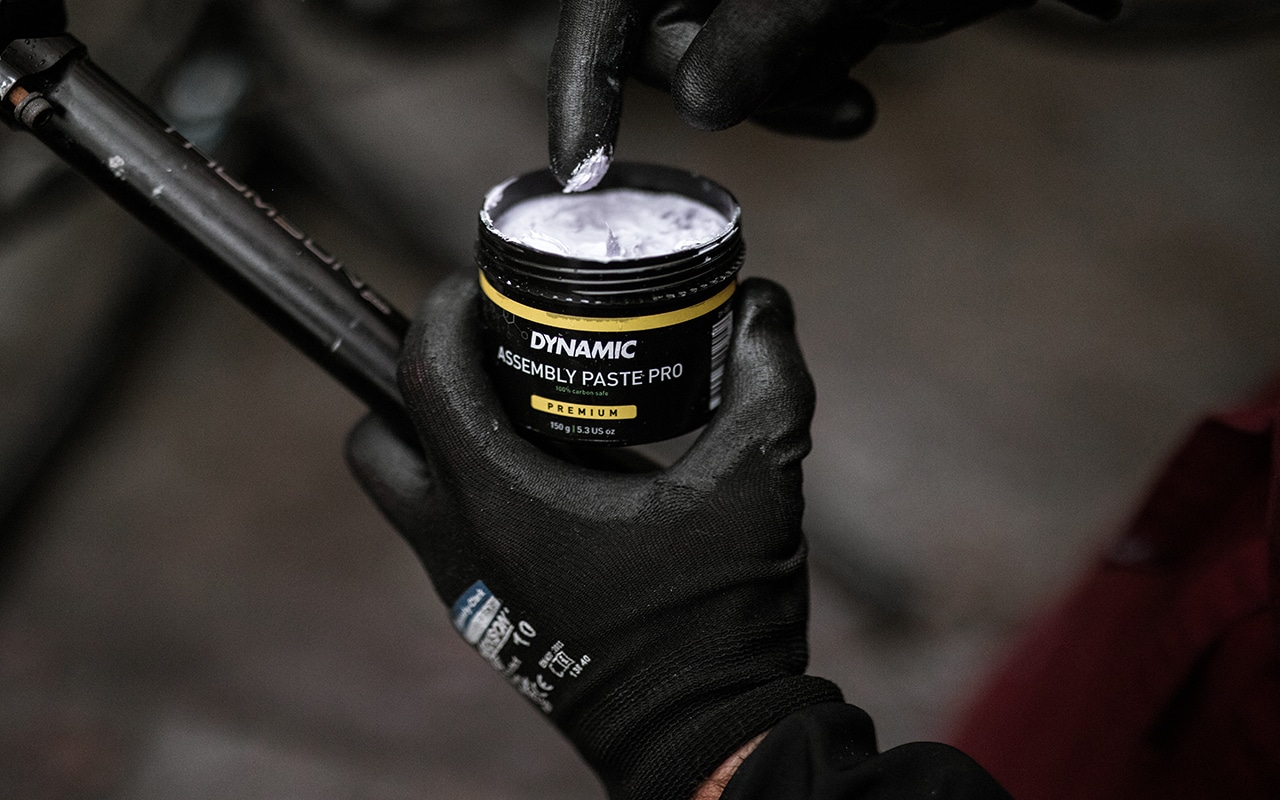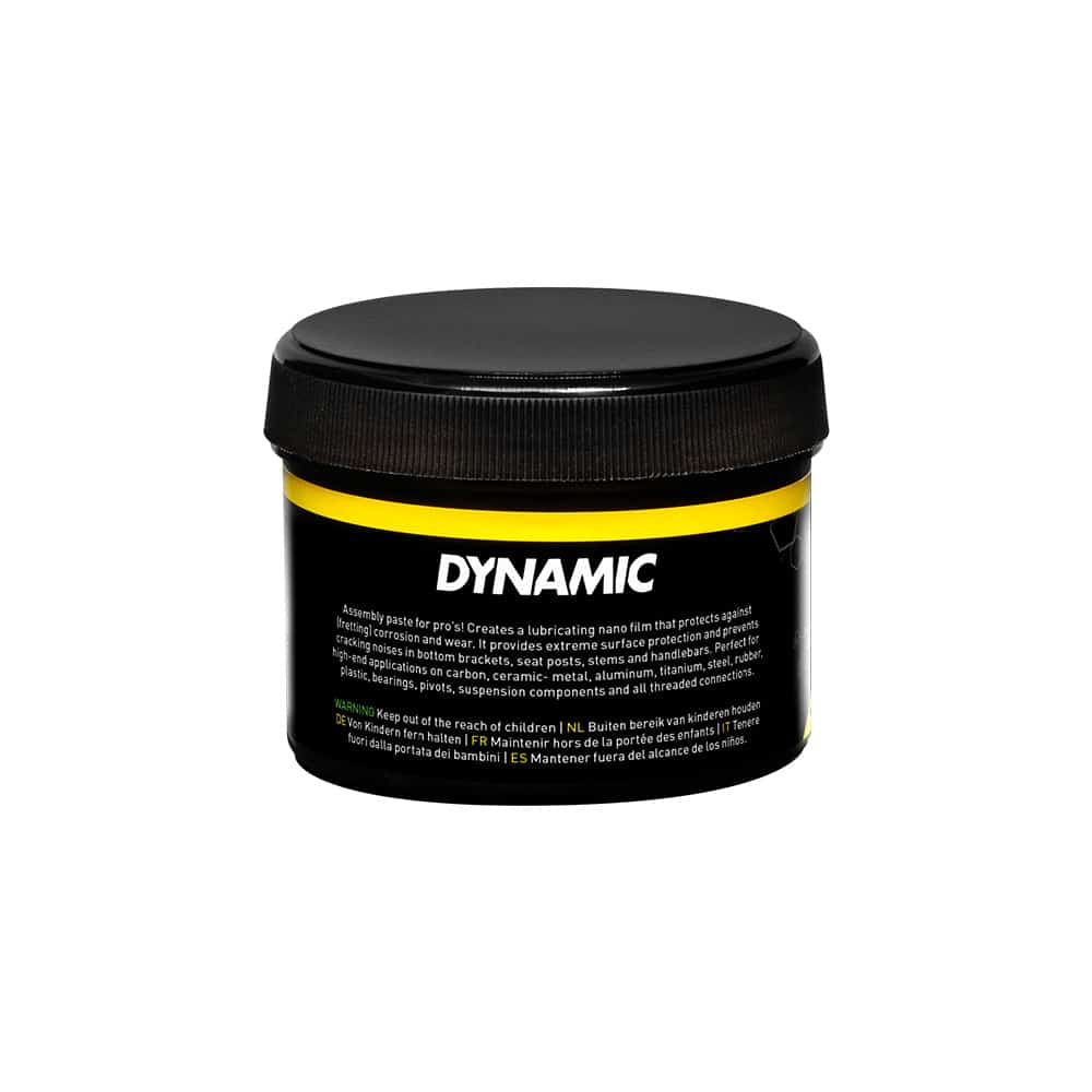 Dynamic Assembly Paste Pro creates a lubricating nano film between materials that protects against fretting corrosion and provides extreme surface protection. It prevents cracking noises in bottom brackets, seat posts, stems and handlebars.