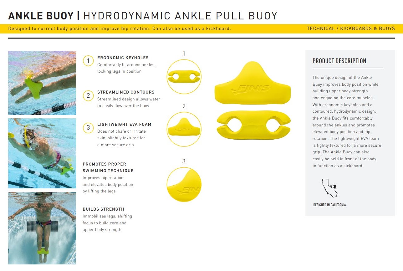 Finis - accesoriu inot (plutitor) pentru picioare Ankle Buoy - galben
