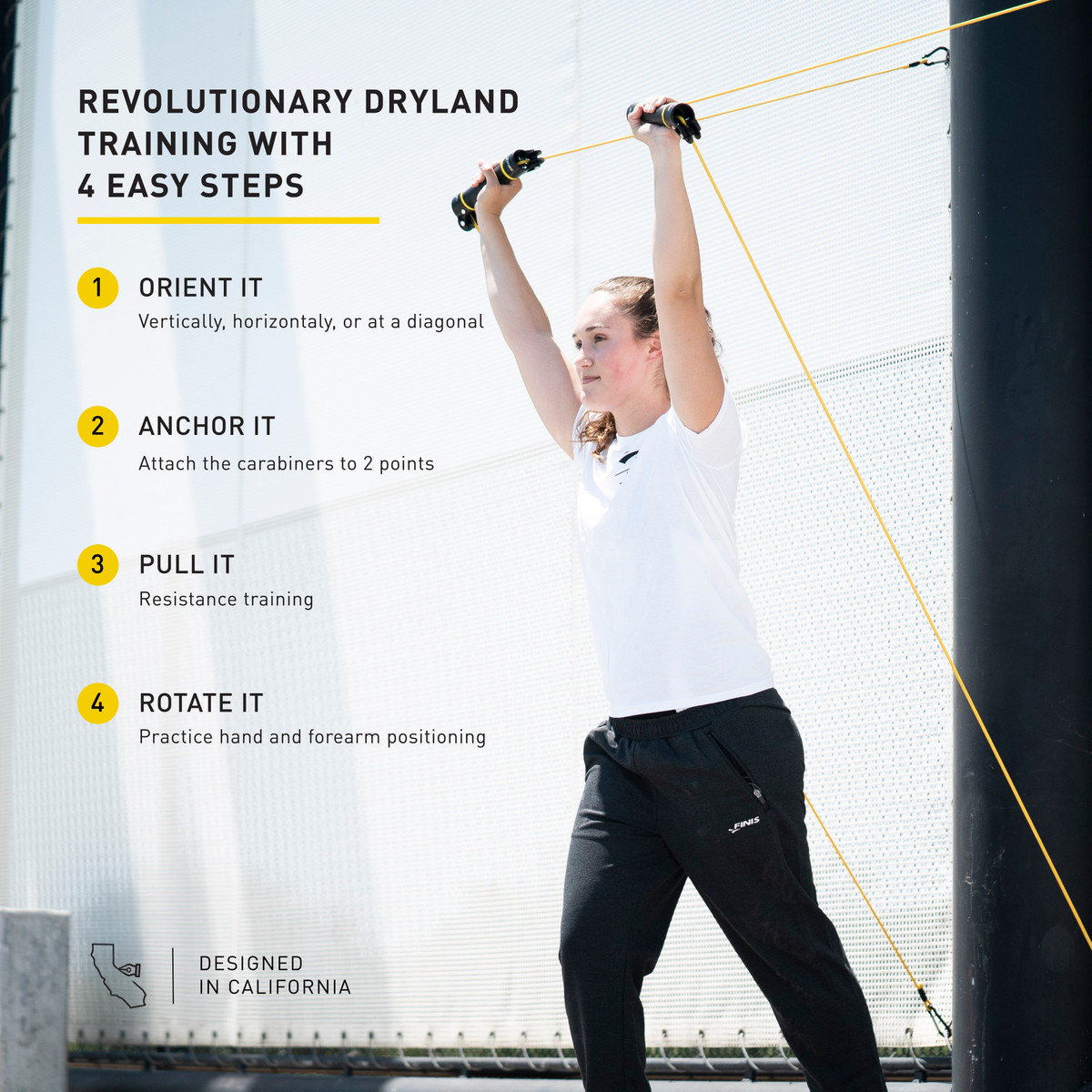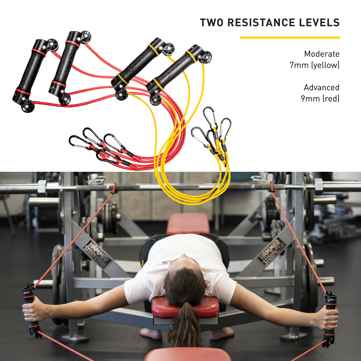 Cele două mânere rotative permit înotătorilor să exerseze poziționarea mâinii și antebrațului fără interferențe sau supraîncărcare a cablului.