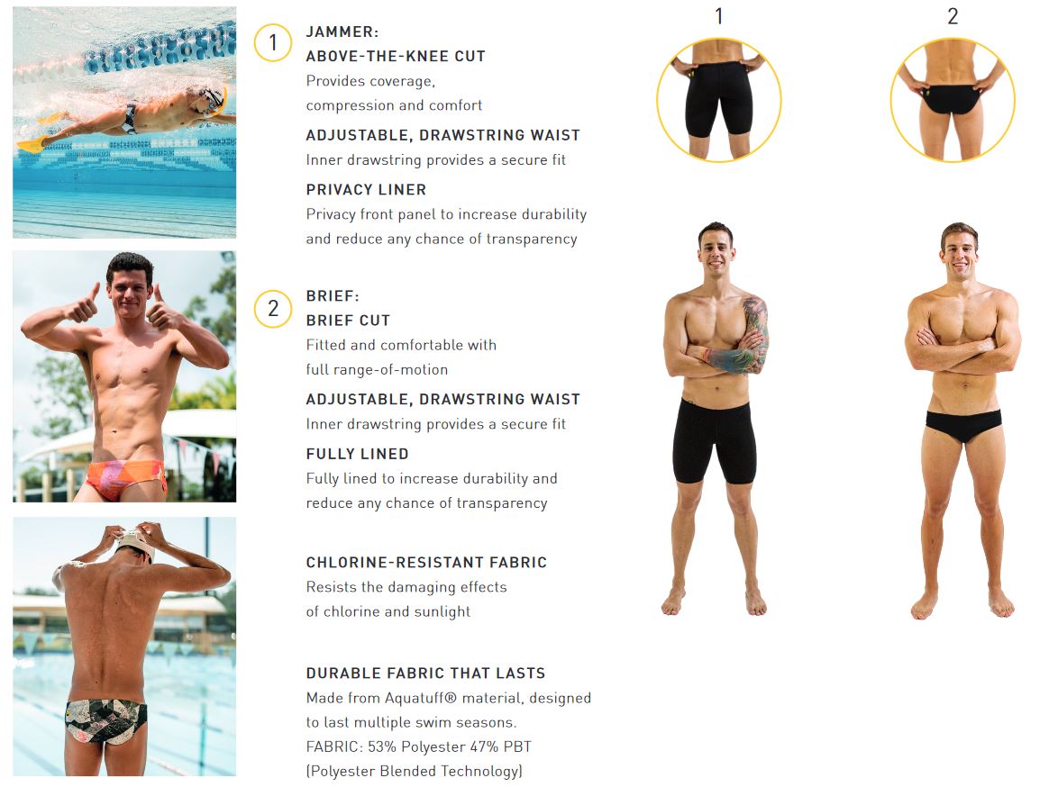 Costumele de inot Finis sunt facute din materialul durabil Aquatuff®, conceput sa reziste la numeroase antrenamente. Este materialul nostru premium, un blend de poliester il face rezistent la clor si nu se va largi in timp.