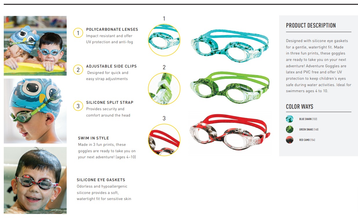 Ochelarii Adventure sunt fără latex și PVC și oferă protecție UV pentru a menține ochii copiilor în siguranță în timpul activităților acvatice.