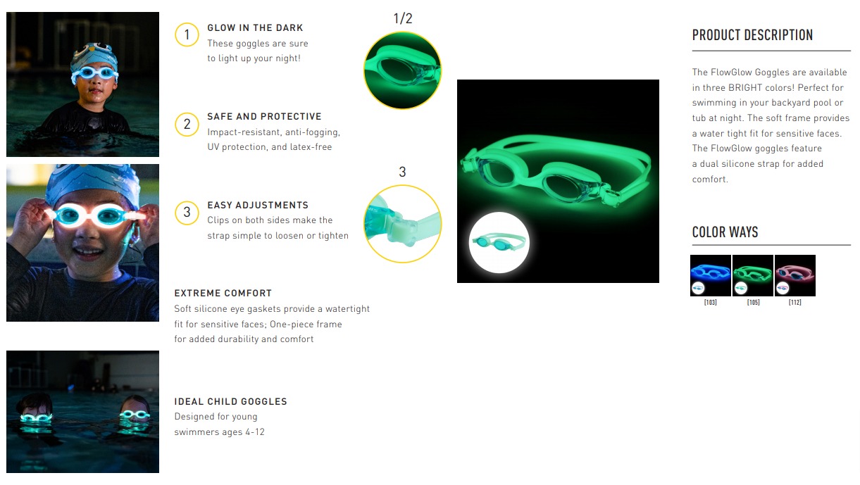 Ochelarii de protecție FlowGlow au o curea dublă din silicon pentru un plus de confort.