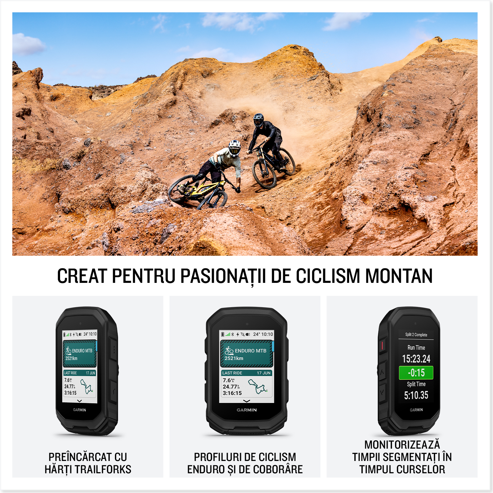 Edge MTB este proiectat pentru a rezista, cu un design robust și compact, gata de zile lungi pe traseu. Iar noile profiluri de ciclism enduro și de coborâre, cu înregistrare GPS la 5 Hz în timpul coborârilor, îți oferă detalii mai precise despre traseele pe care le urmezi.