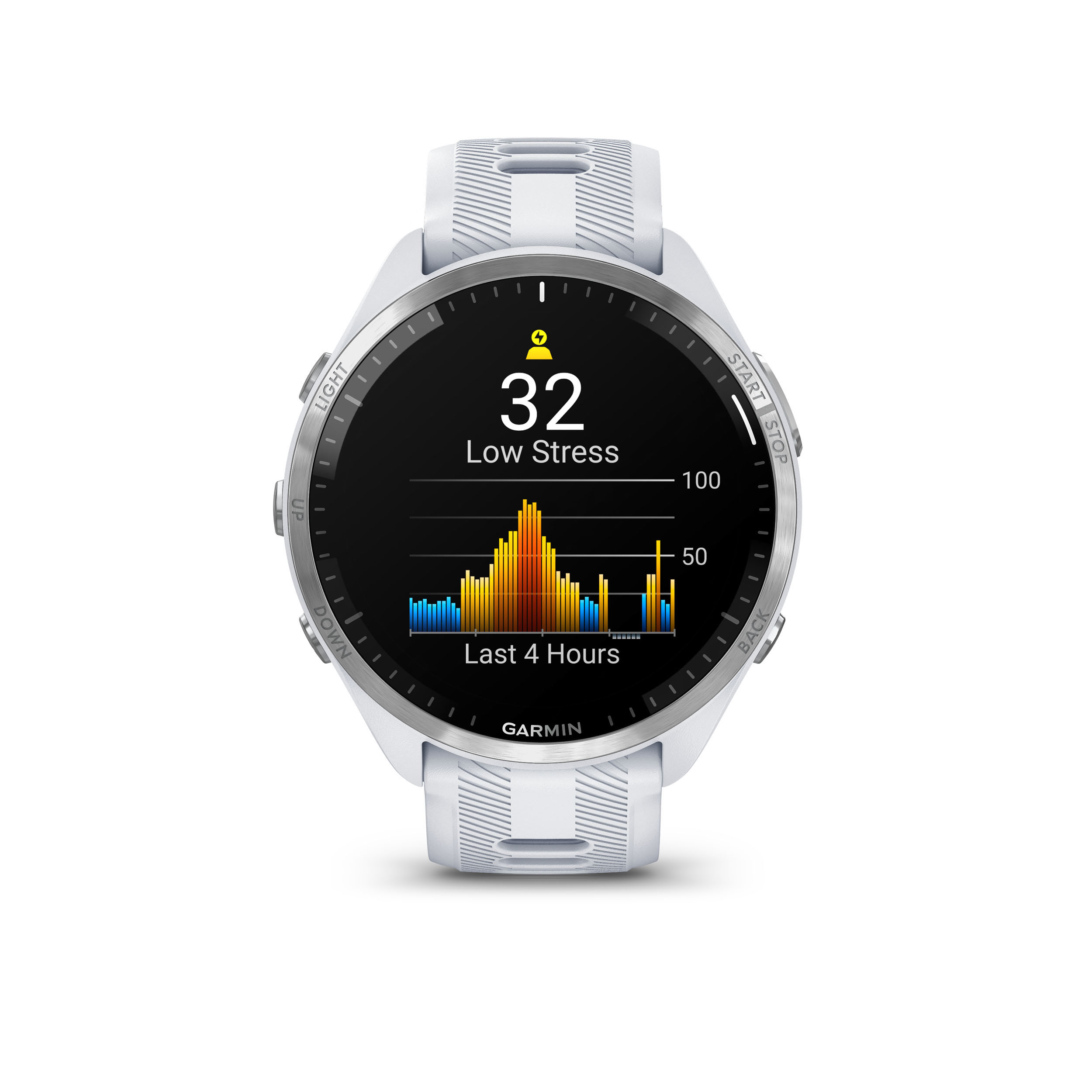 Garmin - Forerunner 965 ceas multisport cu GPS AMOLED - Ramă din titan cu carcasă Whitestone şi curea din silicon Whitestone/gri pudră