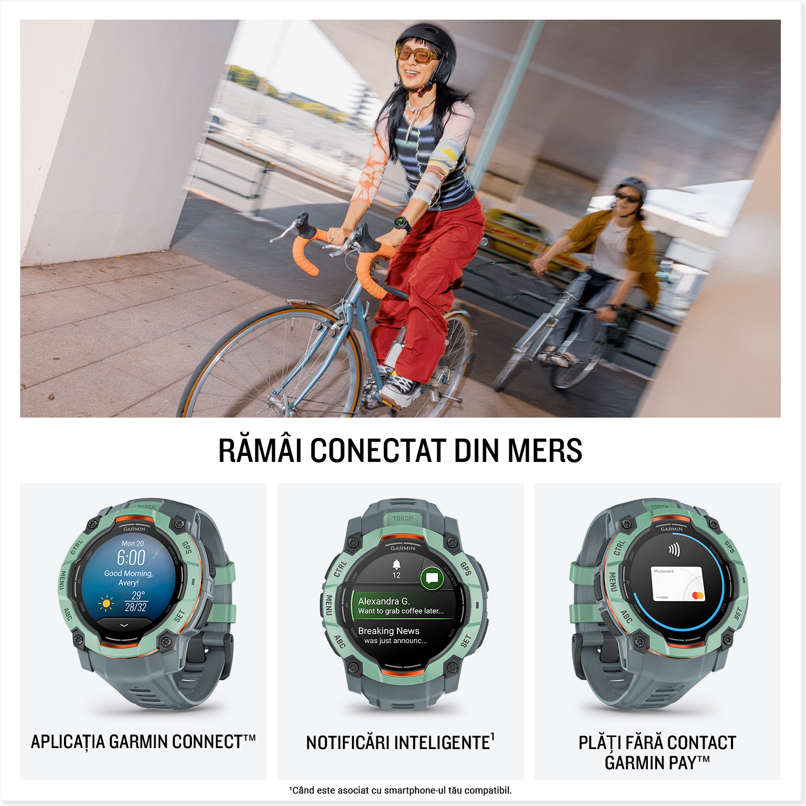 Instinct 3 este un ceas inteligent robust cu GPS, conceput pentru a fi purtat în orice aventură. Lasă-te ghidat, oriunde te poartă aventura.