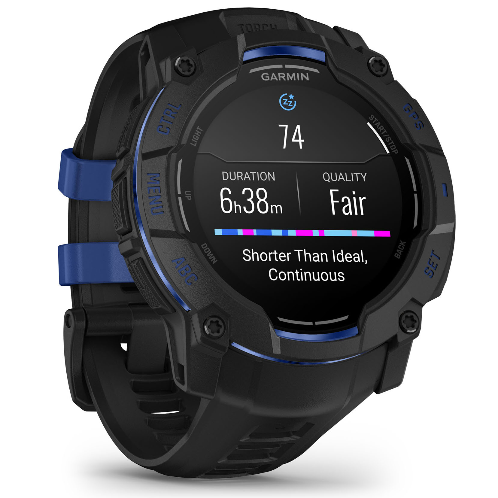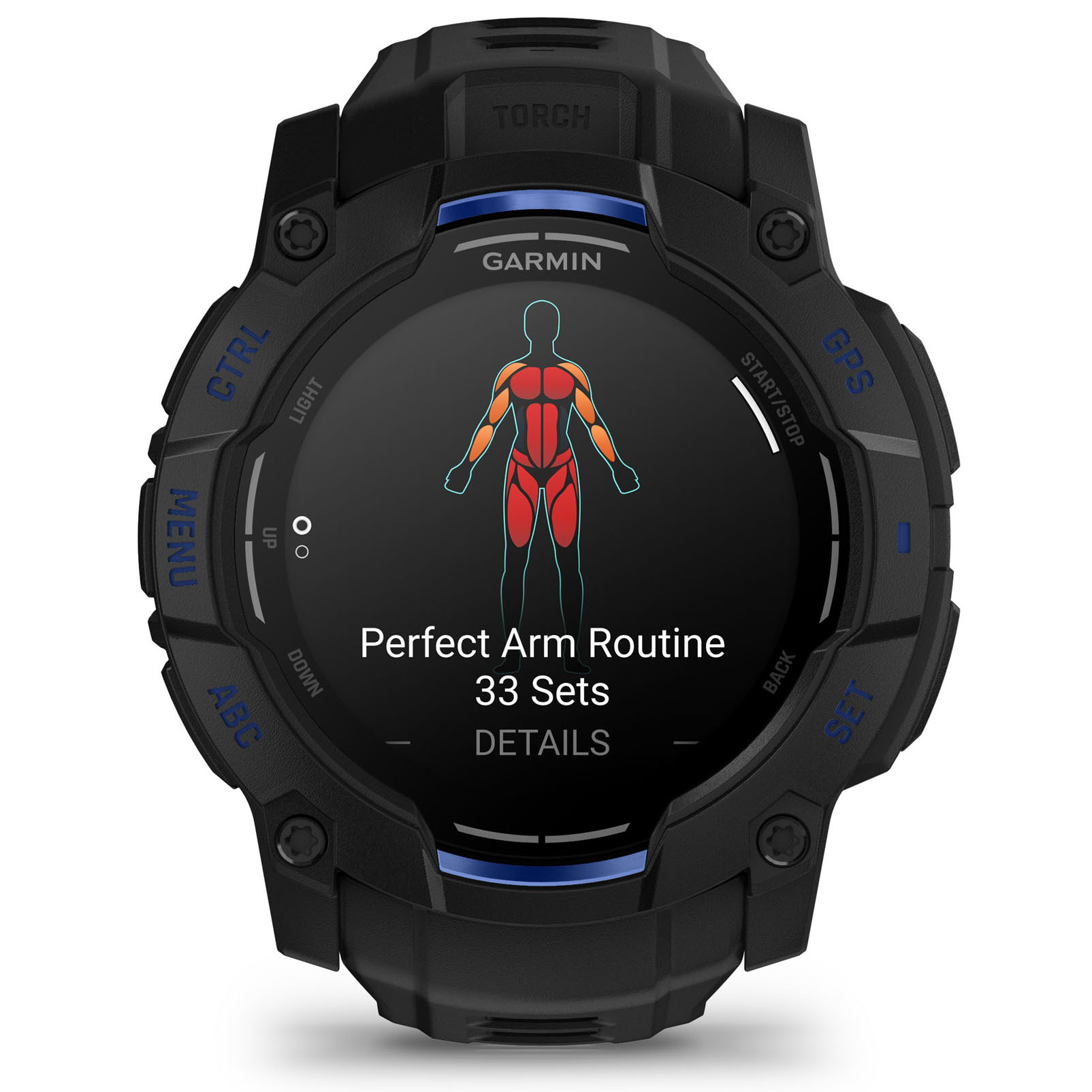 Garmin INSTINCT 3 - 50 mm AMOLED - Whitestone cu curea neagră / albastru intens - smartwatch robust cu GPS