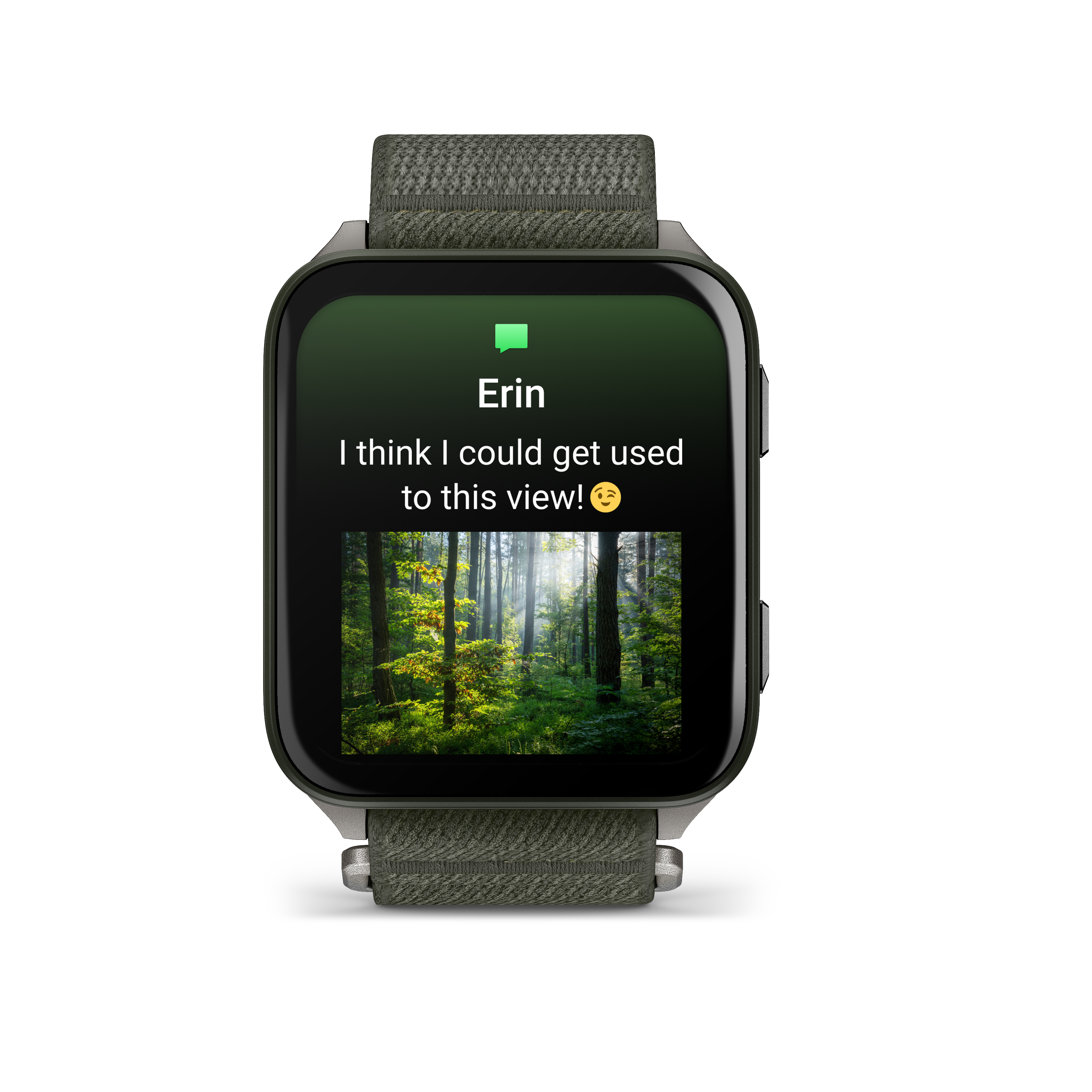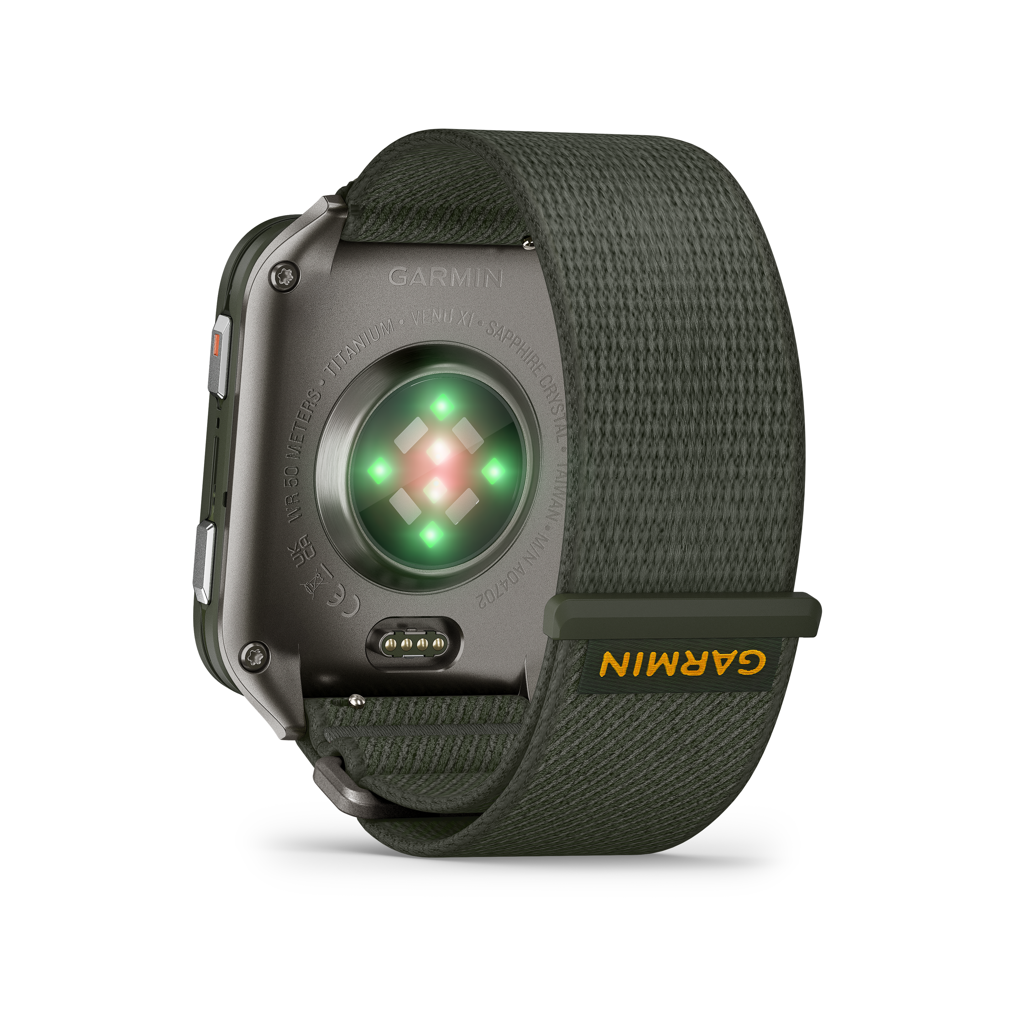 Garmin - Venu X1 - smartwatch cu GPS și AMOLED - Moss cu spate din titan argintiu și curea din nailon ComfortFit Moss