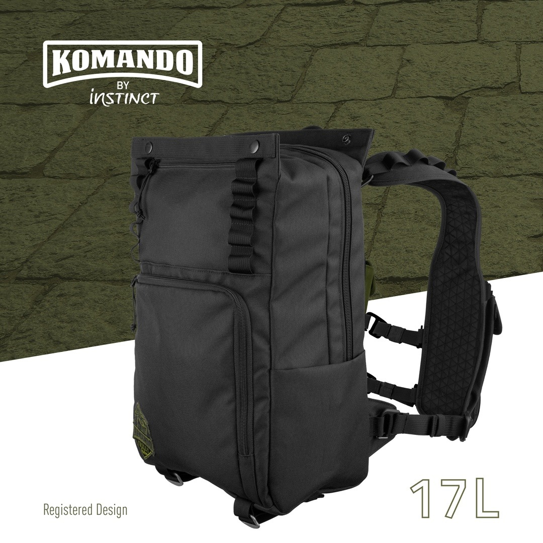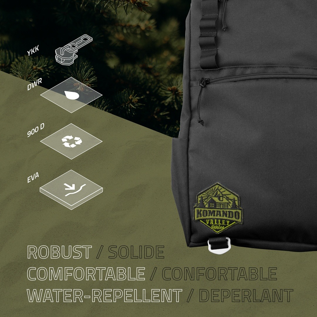 KOMANDO are 17 litri de construcție robustă, premium și funcționalitate antiglonț. Realizat ținând cont de natură, este construit aproape în întregime din poliester reciclat 900D rezistent (cu protecție la apă DWR). Toată căptușeala, ornamentele și curelele sunt din poliester reciclat. Căptușeala EVA oferă confort acolo unde este necesar.