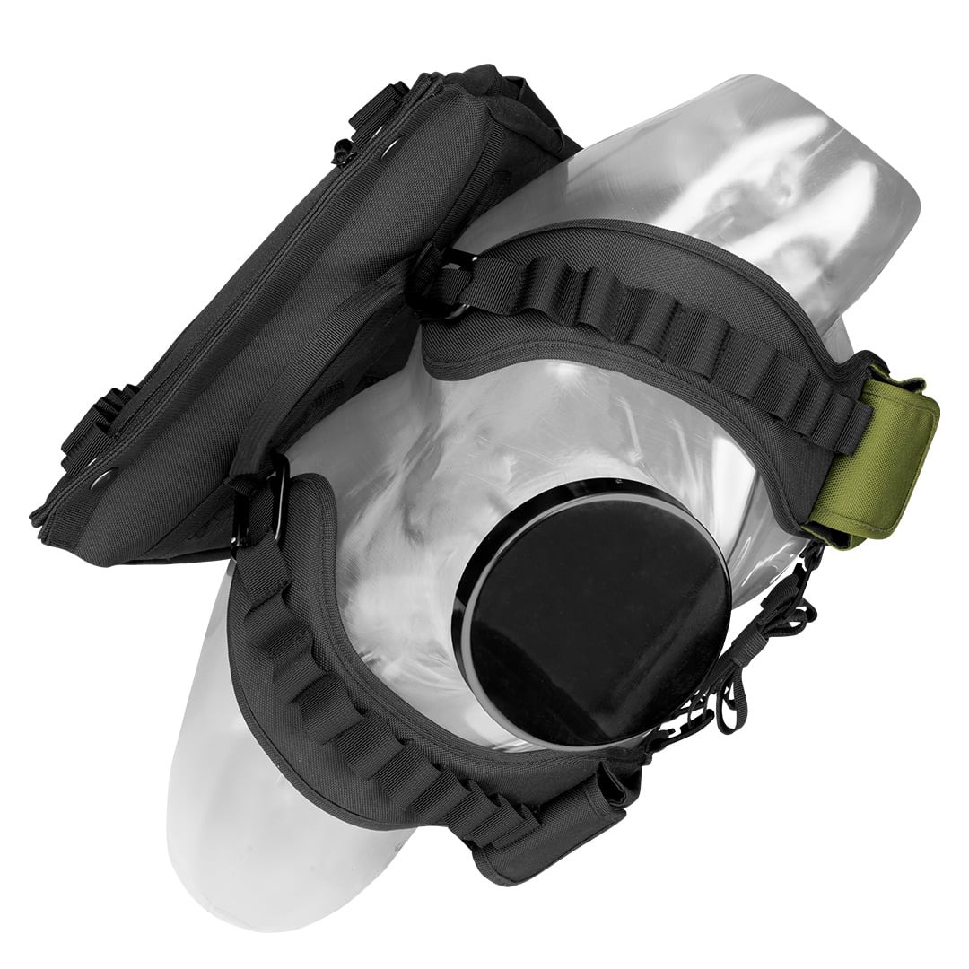Sistemul său unic de curea de umăr cu carabinier detașabil îi permite să fie purtat ca rucsac sau pe piept. De asemenea, permite ajustarea ingenioasă a lungimii totale pentru a se adapta la diferite tipuri de corp.