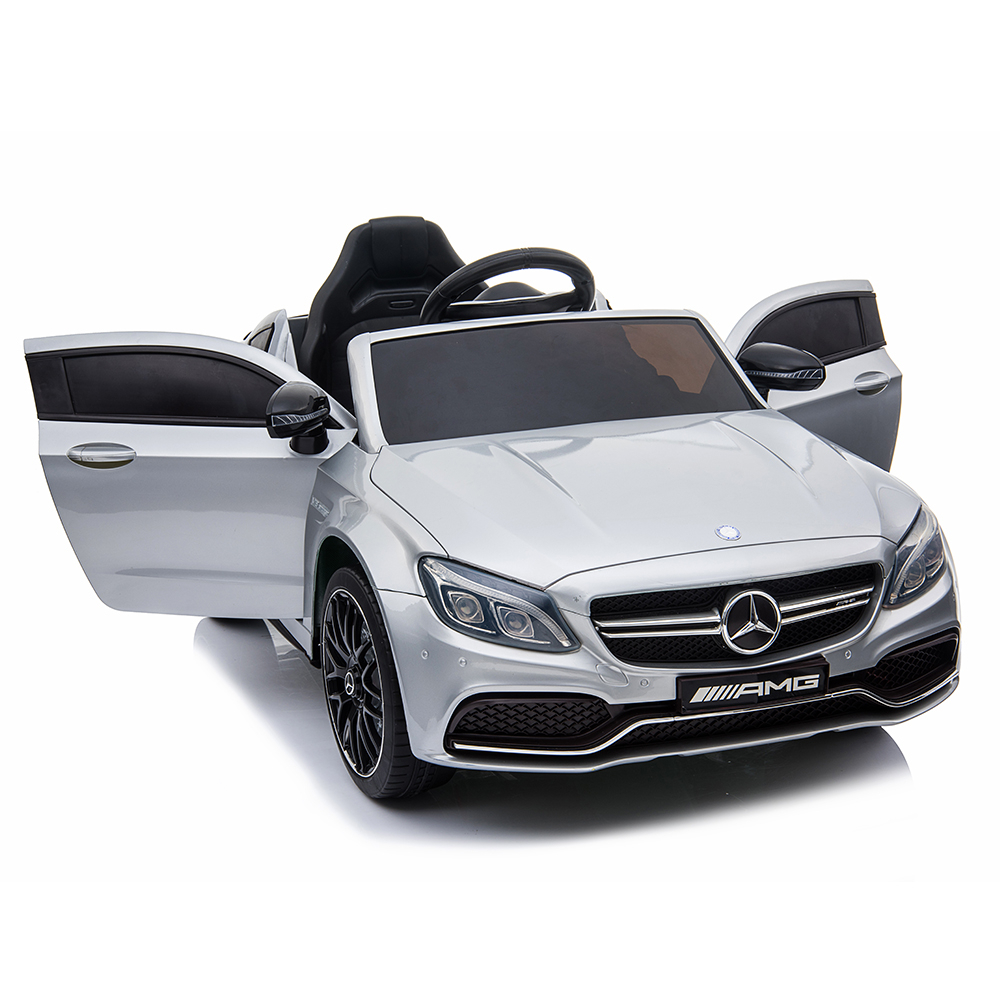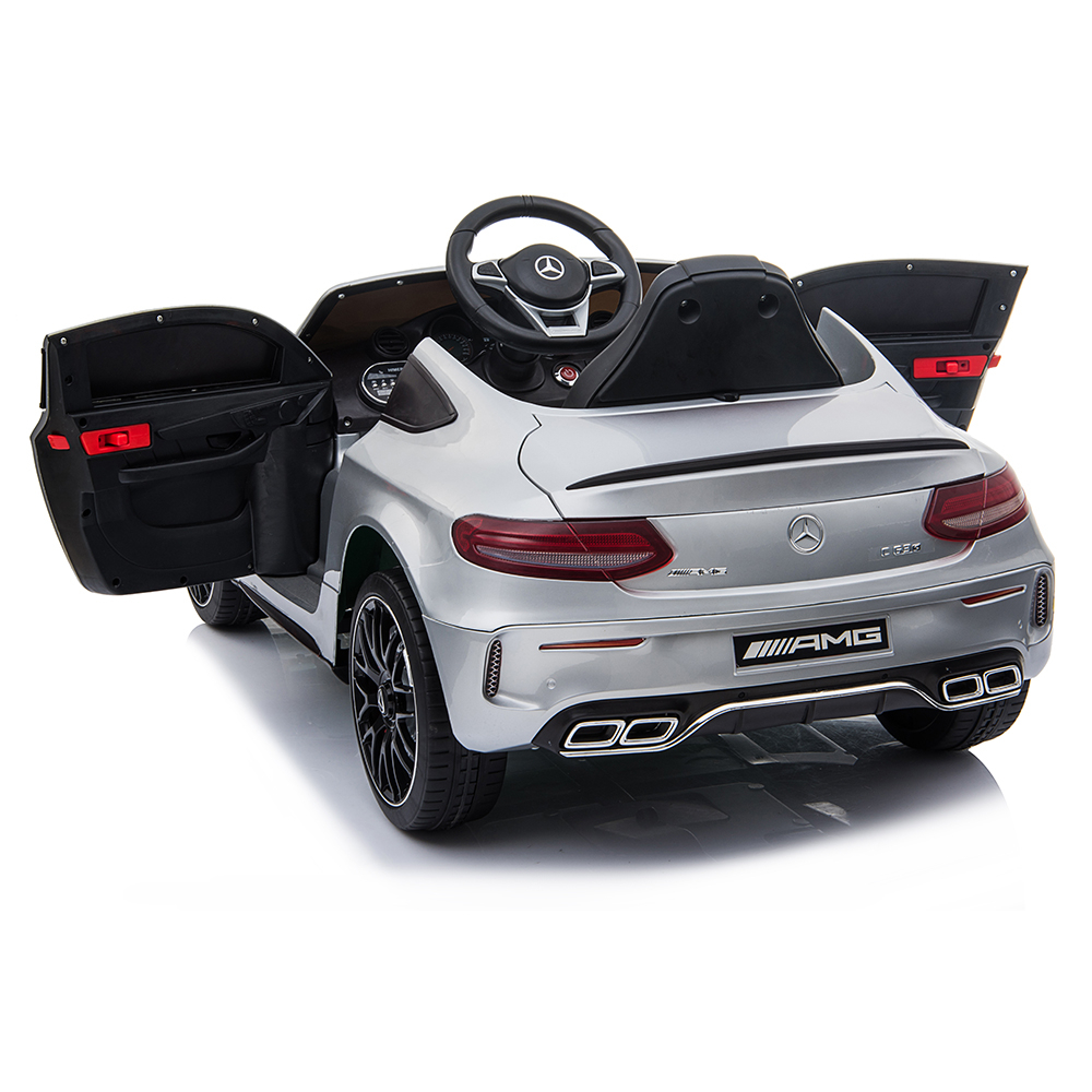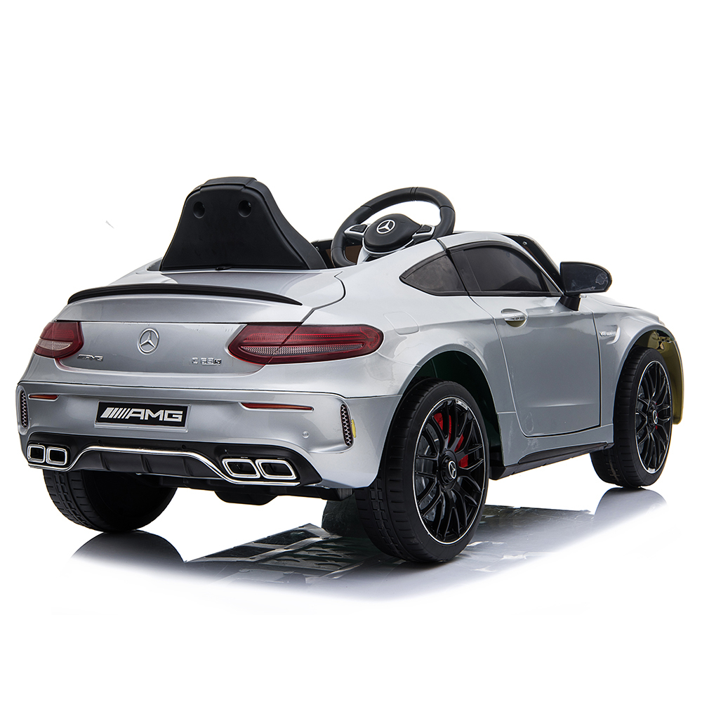 Noul Model Mercedes AMG C63S atrage toate privirile. Cel mai nou design, scaun de piele, muzica si diferite sunete, slow start, telecomanda 2.4G,centura de siguranta cu prindere in 5 puncte,pornire/oprire progresive,grila din fata cu celebra sigla Mercedes.