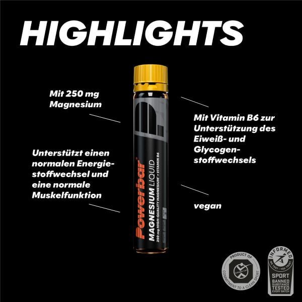 Ca sportiv, este important să se asigure un aport suficient de magneziu. Magneziul este un mineral important pentru metabolismul energetic normal și pentru funcționarea normală a mușchilor. De asemenea, magneziul ajută la reducerea oboselii și este unul dintre cei 5 electroliți care se pierd cel mai mult în timpul exercițiilor fizice din cauza transpirației. Fiola Powerbar MAGNESIUM LIQUID oferă 250 mg de magneziu de înaltă calitate plus vitamina B6 și se potrivește în orice buzunar datorită formatului său practic.