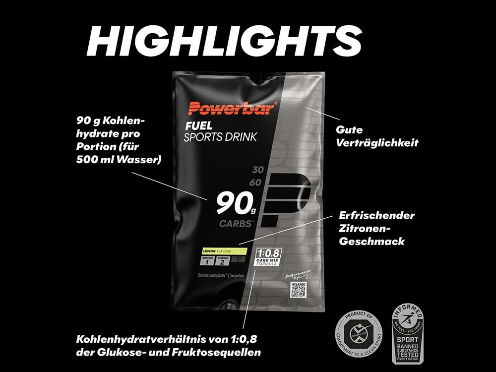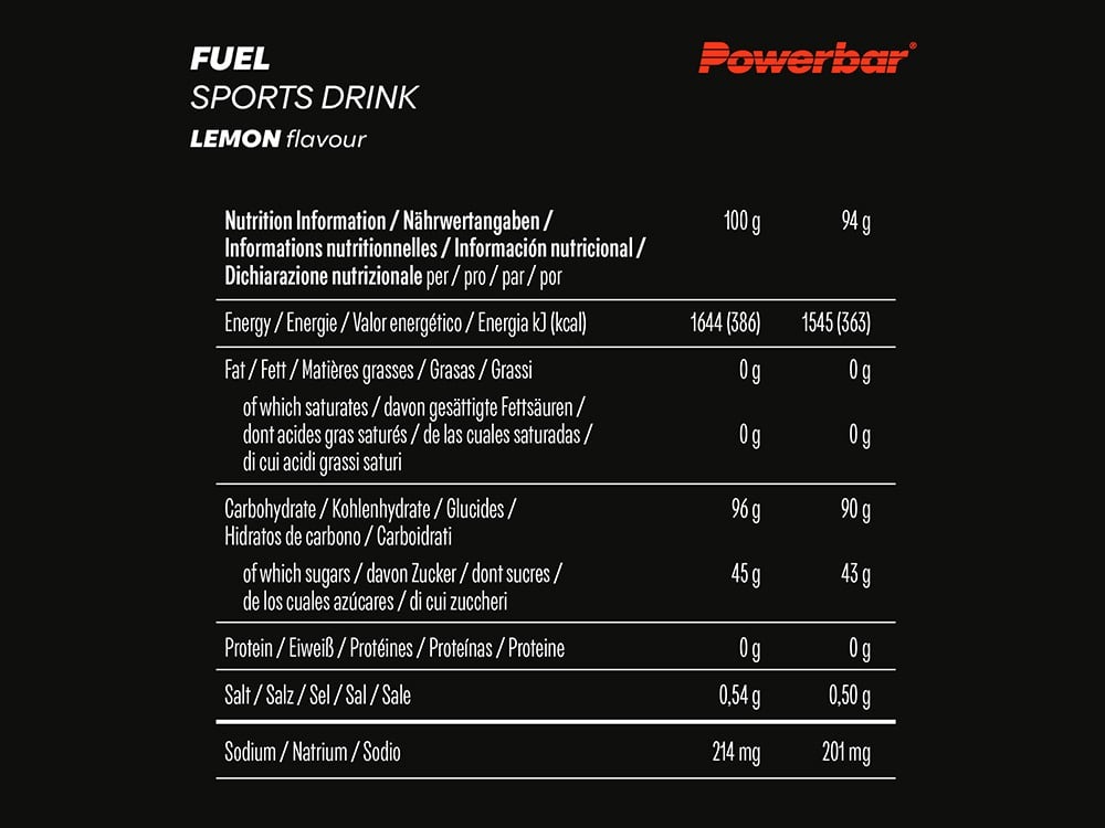 - Pentru o alimentare ideală cu energie în timpul activității fizice moderate până la intense, băutura sportivă oferă 90g de carbohidrați per porție (pentru 500 ml de apă) și echilibrează simultan nivelurile de lichide.