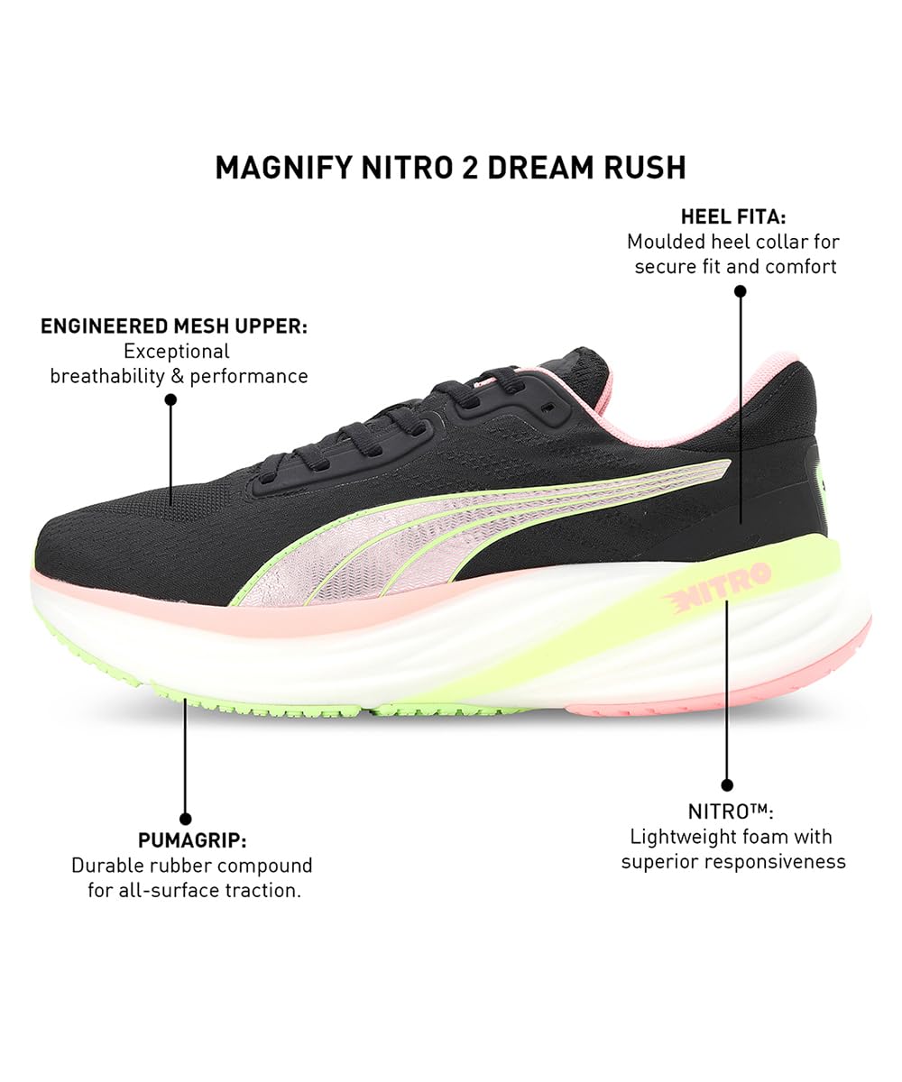 Puma - pantofi alergare pentru femei Magnify Nitro 2 Dream Rush shoes - negru coral alb verde deschis Speed