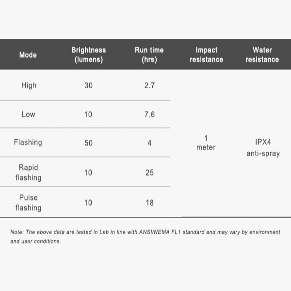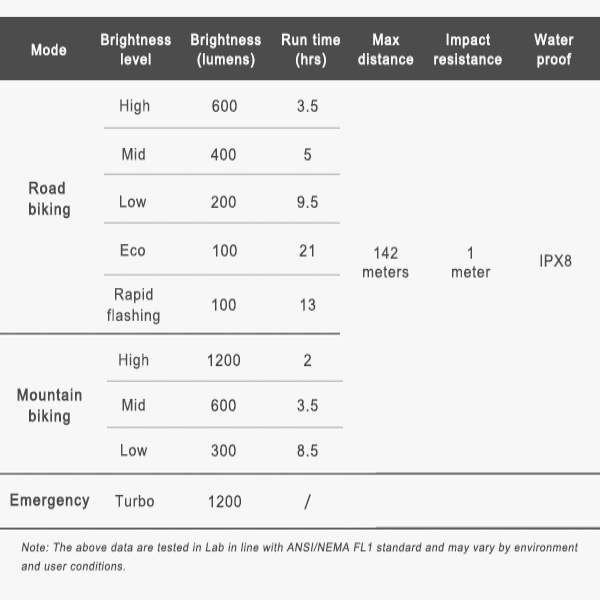 Materiale: Partea frontală și corpul principal sunt realizate din aluminiu cu Anodizare Mil Type III Hard Coat; partea din spate și suportul pentru ghidon sunt realizate din plastic durabil