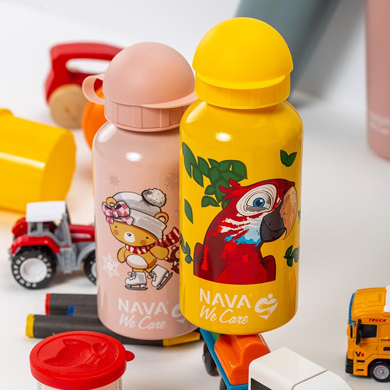 Sticla Nava de 400 ml „We Care” va încânta atât tinerii cât și bătrânii. Este fabricat din aluminiu, cu un strat protector la interior pentru o mare durabilitate si protectie impotriva temperaturilor ridicate si a bauturilor acide. Fără BPA, ftalați sau alte substanțe nocive, este complet sigur pentru depozitarea igienică a băuturilor. Cu capac de protecție și gura de scurgere pentru a preveni scurgerile și pentru ușurință în utilizare. Este foarte usoara, ideala pentru micii nostri prieteni, pentru a-l folosi in fiecare zi la cresa, la scoala, la plimbari si de asemenea pentru interiorul casei, deoarece nu se rupe si este complet impermeabil. De asemenea, este o idee interesantă de cadou de ziua de naștere pentru copiii mici, cărora cu siguranță le va plăcea! În ceea ce privește curățarea, pur și simplu scoateți capacul și spălați-vă manual cu un burete moale.Nu puneți în cuptorul cu microunde, în mașina de spălat vase sau în congelator.