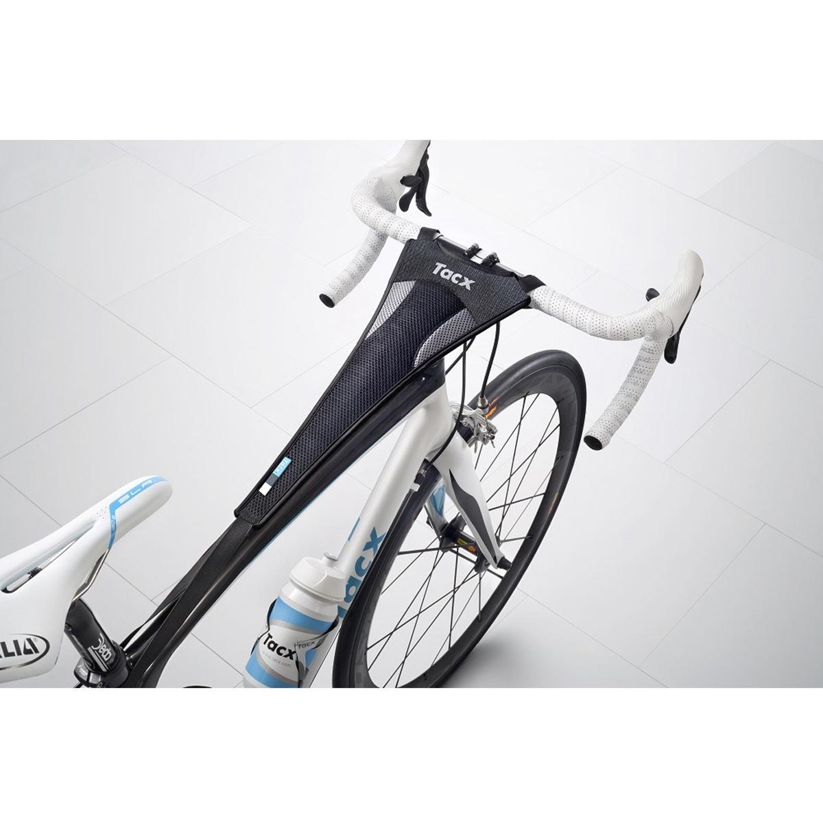 Protectia Tacx care protejeaza bicicleta de transpiratie in timpul antrenamentului. Este creata dintr-un material absorbant si se monteaza usor.