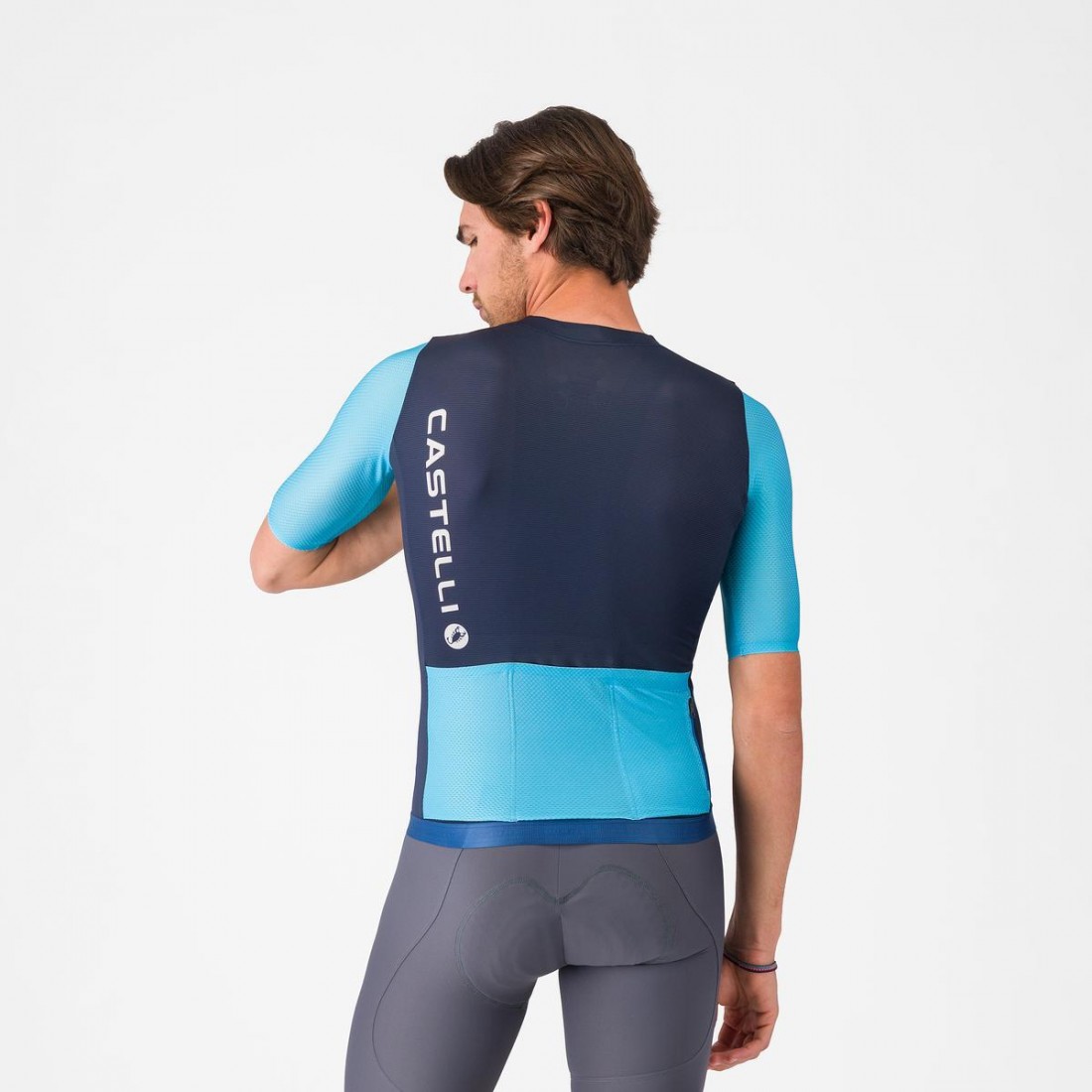 Tricou cu maneca scurta Castelli Corretto, pentru barbati, albastru neon/albastru belgian M