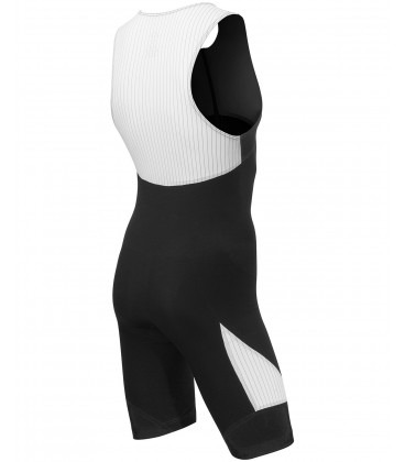 Trisuit-ul este un echipament dedicate triatlonistilor. Costumul de compresie compatibil cu ITU este prevăzut cu un fermoar în față de 15", tehnologie de protecție solară UPF 50+ și dispozitiv de etanșare a coapsei din silicon, pentru o fixare sigură și confortabilă.